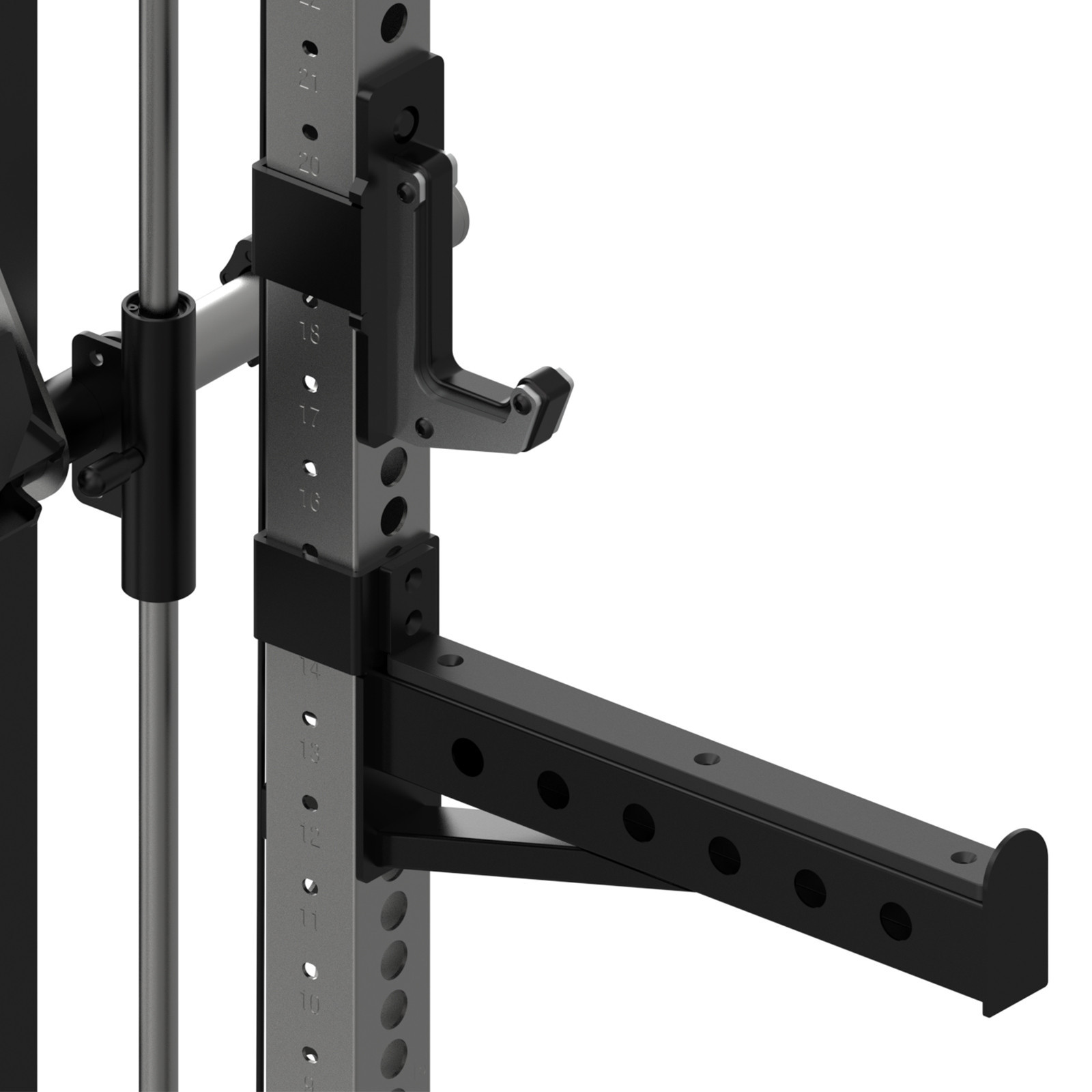 The square uprights tubes are made of 3-mm thick steel to conform with commercial standards, and the higher number of holes allows for finer adjustments to better position your J-hooks and spotter bars exactly where you want them. This means you can find the right settings for any bench or user body type for exercises ranging from bench press to squats or shoulder press with added safety and comfort when training with a free barbell.